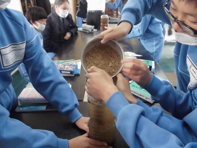 5年生理科「来年度の準備をしよう」では、ジャガイモの種芋を植えるための準備を行いました。種芋を半分に切り、約60gにして切り口に栄養剤を付けます。電子てんびんで重さを確かめながら作業を慎重に進める姿が見られました。5年生は、来年度6年生の学習で種芋から育ったジャガイモや葉を使って観察や実験をしていきます。