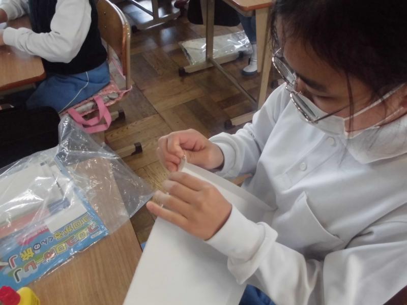 6年生の「フォトフレームづくり」が完成に近づいてきました。フレームに飾り模様をたくさん入れていました。一人一人丁寧に仕上げる子が多く、細かな細工がされています。黙って作業を進めています。出来上がりが楽しみです。