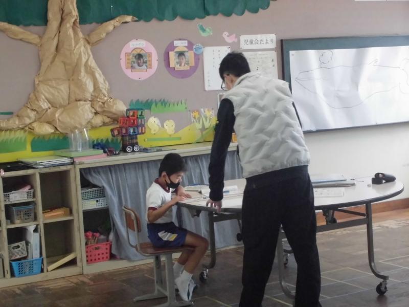 1・2組では、それぞれの学年に応じての学習を進めていました。分からないところを個別で確実に学習していきます。何度も繰り返し学習することで理解度が上がります。やる気を持って学習を進めています。クロームブックを使った調べ学習も行っていました。個々の課題解決のために熱心に学習しています。