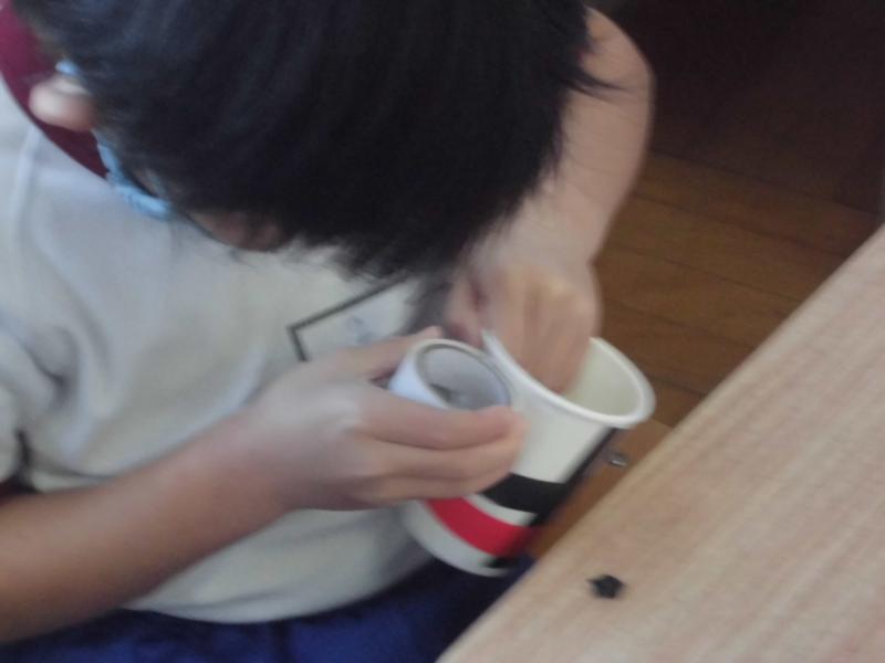 3年生の図画工作科「クリスタルファンタジー」が完成しました。作品カードに題名と感想を書き込み、教室内に展示しました。最後の仕上げをする子もいました。きれいなアート作品にはライトで照し、光輝くようにしています。夜に見ても神秘的な作品ですね。