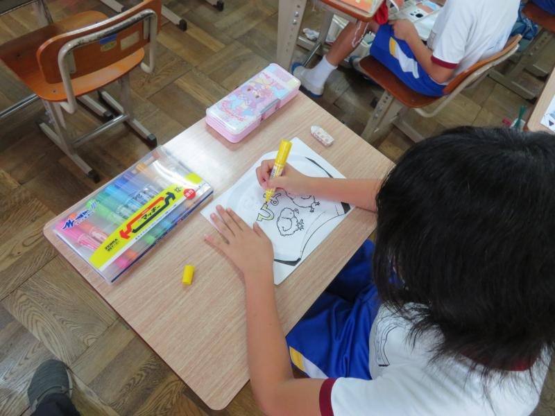 1年生の体育科「ボール運動」では、ワンバウンドキャッチボールを行っていました。楽しくゲームをすること、よい動きや攻め方ができることが学習のねらいです。教科書でルールを確認しながら、プレイの順番を話合いで決めてからゲームを行いました。投げる、正面へ移動する、ボールをキャッチする、の一連の動きがゲームを進めながらスムーズな動きになっていきます。「おもしろい」「またしたい」の感想が聞かれました。