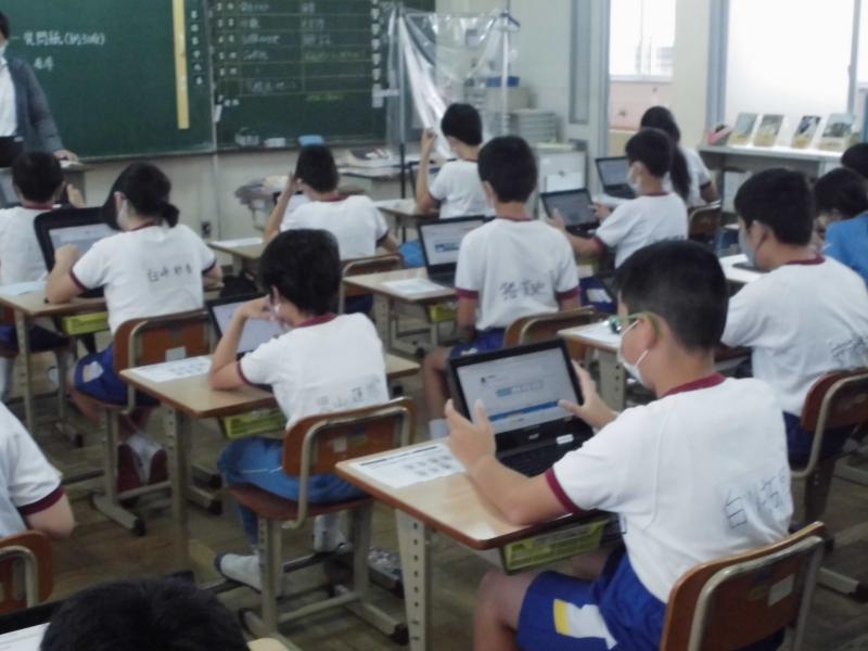 1年生の道徳科では、「いじめをゆるさない」のテーマで話合いを進めていました。クロームブックのロイロノートを使用して、課題について自分の考えを書き込み、みんなの前に自分の考えを発表する姿が見られました。人の嫌がることや自分でやってはいけないと思ったことをしないなど、いろいろな意見が出されました。どうすればいじめがなくなるのか、みんなが楽しくできるのかなどの解決の方法も考え発表しました。