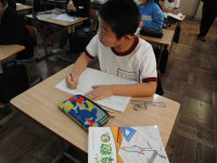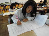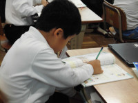 4年 手形スタンプを作って、掲示用学級目標を仕上げていました。とてもうれしそうです。