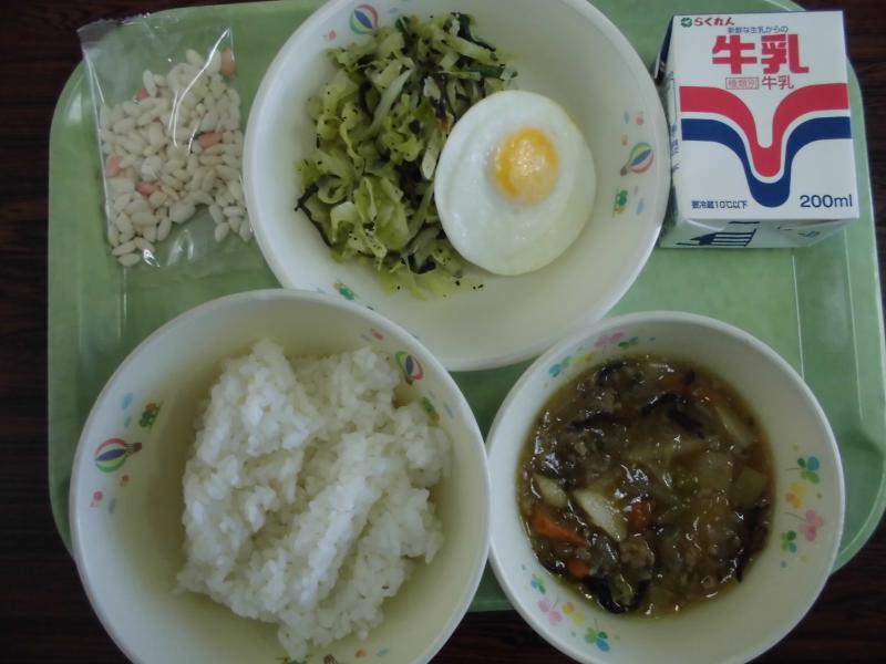今日の給食メニューは、ハヤシライス、大根サラダ、お祝いデザートです。683kcal、タンパク質22.5g、脂質21.0g、塩分1.9gです。献立のねらいは、「今年度最後の給食を食べる」です。小学校は、今年度最後の給食です。クラスのみんなで楽しく食べてください。
