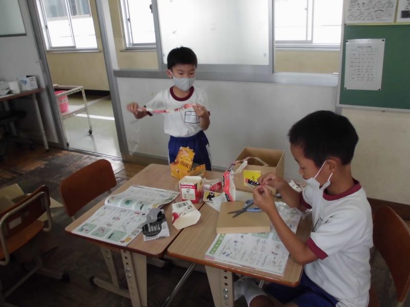 中休みの時間に、3年生の子どもたちが作品をもってきてくれました。糸を引くと動く「手作りおもちゃ」です。遊び方の説明書付きでした。オリジナルキャラクターが描かれていて、創意工夫ある作品でした。自分たちも遊びたいのにプレゼントしてくれました。少し早いクリスマスプレゼントをありがとうございました。
