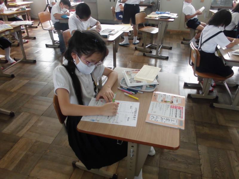 本日、税の推進作品習字で表彰式が行われました。4年生女子児童と5年生男子児童の2名が、銀賞・銅賞に輝きました。税務署の方から、直接賞状を手渡され、大変嬉しそうでした。