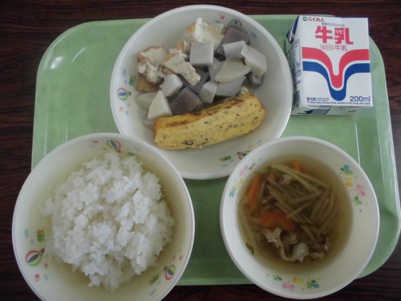 4月14日(火)本日より豊岡小学校の給食が開始されます。1年生は明日からです。今日の給食メニューは、牛乳、たけのこご飯、いかの磯部あげ、ボイル野菜、かき玉汁、あられの計610kcalです。献立のねらいは、季節の炊き込みご飯を味わうです。春を代表する食べ物「たけのこ」を使った炊き込みご飯です。おいしく食べてください。<ベテラン教員の一言>たけのこご飯は、昔から変わらぬ春の料理ですね。昔、祖母が灰で採れたてのたけのこを煮ていましたね。懐かしい思い出です。