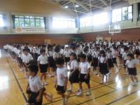 昼休みの時間に、体育館で「なわとびチャレンジ(高学年の部)」を行いました。4~6年生の子どもたちが一同に集結、持久とびをしました。4年生は5分間、5・6年生は7分間を目標にチャレンジです。4年生は児山君が5分間飛び続け、6年生では菊池さんが7分間飛び続けました。なわとびの技術も体力もすばらしいですね。自己記録をめざしてみんな頑張っていました。