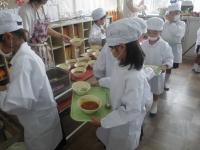 小型レーズンパン、牛乳、鶏肉のトマトソース、粉ふきいも、ジュリアンスープ、いよかんです。献立のねらいは、「鉄分や食物繊維が豊富なレーズンが入ったパンを食べる」です。レーズンは鉄分や食物繊維が豊富です。レーズンパンが苦手な子も多いかもしれませんが、少しでも多く食べてほしいです。