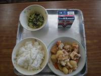 今日の給食メニューです。コッペパン、牛乳、豚肉のカレー煮、ツナサラダ、みかんです。今日の献立のテーマは「地産のみかんを食べる」です。今年度初めての地元産のみかんです。本当に愛媛県産のみかんはおいしいですね。愛媛に育った私たちは、当たり前の味になっていますが、他県へ行ってみかんを食べると愛媛県産のみかんのおいしさに気付きますね。<ベテラン教員の一言>みかん大好きです。愛媛県産ポンジュースも大好きです。