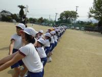 本日は、第4学年の体育科の授業を紹介します。元気な号令の声が体育館全体に響き渡っていました。いろんなステップでランニング運動を行っていました。スキップ、もも上げ、回転、ひねりなど、いろんな筋肉が使われ準備運動前のランニングには最適です。足と手を使ったリズムじゃんけんやお手玉を使った体ほぐし運動を行いました。左右同じ動作はよくしますが、足と手が違う動きをしたり、声を出しながら体に変化を付けるなど、頭で考えた動きを瞬時に行う運動を取り入れていました。子どもたちも楽しそうに、運動する姿が見られました。