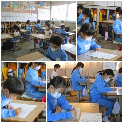 5年生は、人権ポスターを仕上げ中でした。6年生は理科です。植物の葉に日光が当たると、葉にどんな変化が起きるのかを実験していました