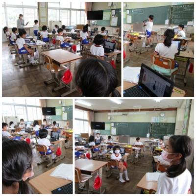2年生の算数科です。初任者指導の先生が授業を見せてくださいました。班で話し合ったことをロイロノートでまとめて提出し、全体で話し合っていました。みんな「算数は・か・せ」になれたようです