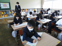 生徒指導主事から、夏休みの残りの生活を有意義に送るためのお話を聞いたり、防災ヘルメットの説明を聞いたりしました。