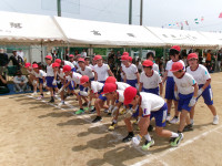 5年生 体育科でティーボールをしていました。風の中で頑張っていました。