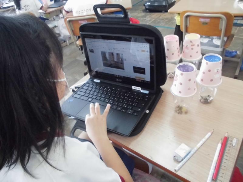 1年生生活科「おもちゃをつくろう」では、秋の自然物を利用した手作りおもちゃの発表会を行いました。ドングリを使った楽器、枝の釣り竿など、工夫した作品がたくさんできました。子どもたちは自分の作品を写真に撮り、学級全体の電子黒板に掲示しました。電子黒板に表示し工夫したことや使い方などの発表を行いました。